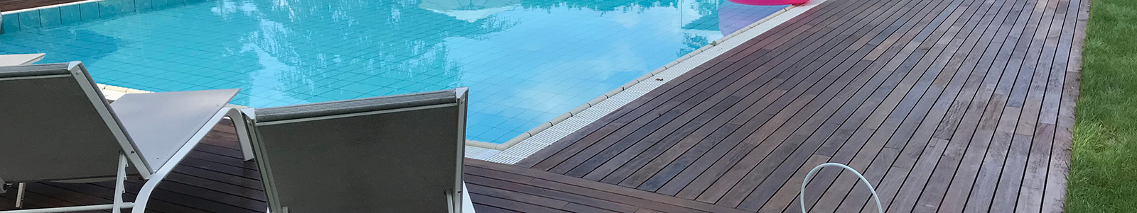 Che legno usare per rivestire la piscina? I più indicati sono Teak, Ipè o Frassino termotrattato.