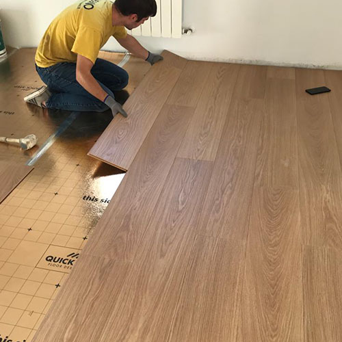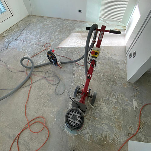 Servizio di assistenza in cantiere, come: misurazione dell’umidità residua del sottofondo, preparazione del sottofondo con levigatura, applicazione di primer, stesura di livellante per ripristino di planarità.